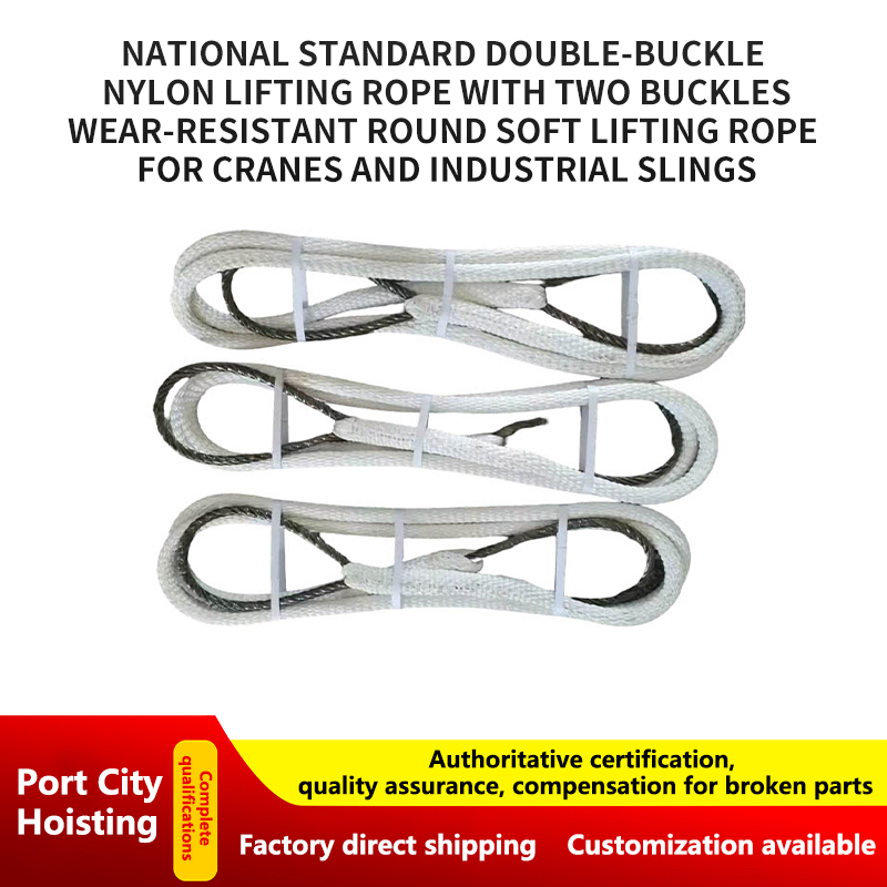 National Standard Two-End Buckle Nylon Lifting Rope Double Buckle Lifting Wear-Resistant Round Soft Lifting Rope Crane Industrial Lifting Belt